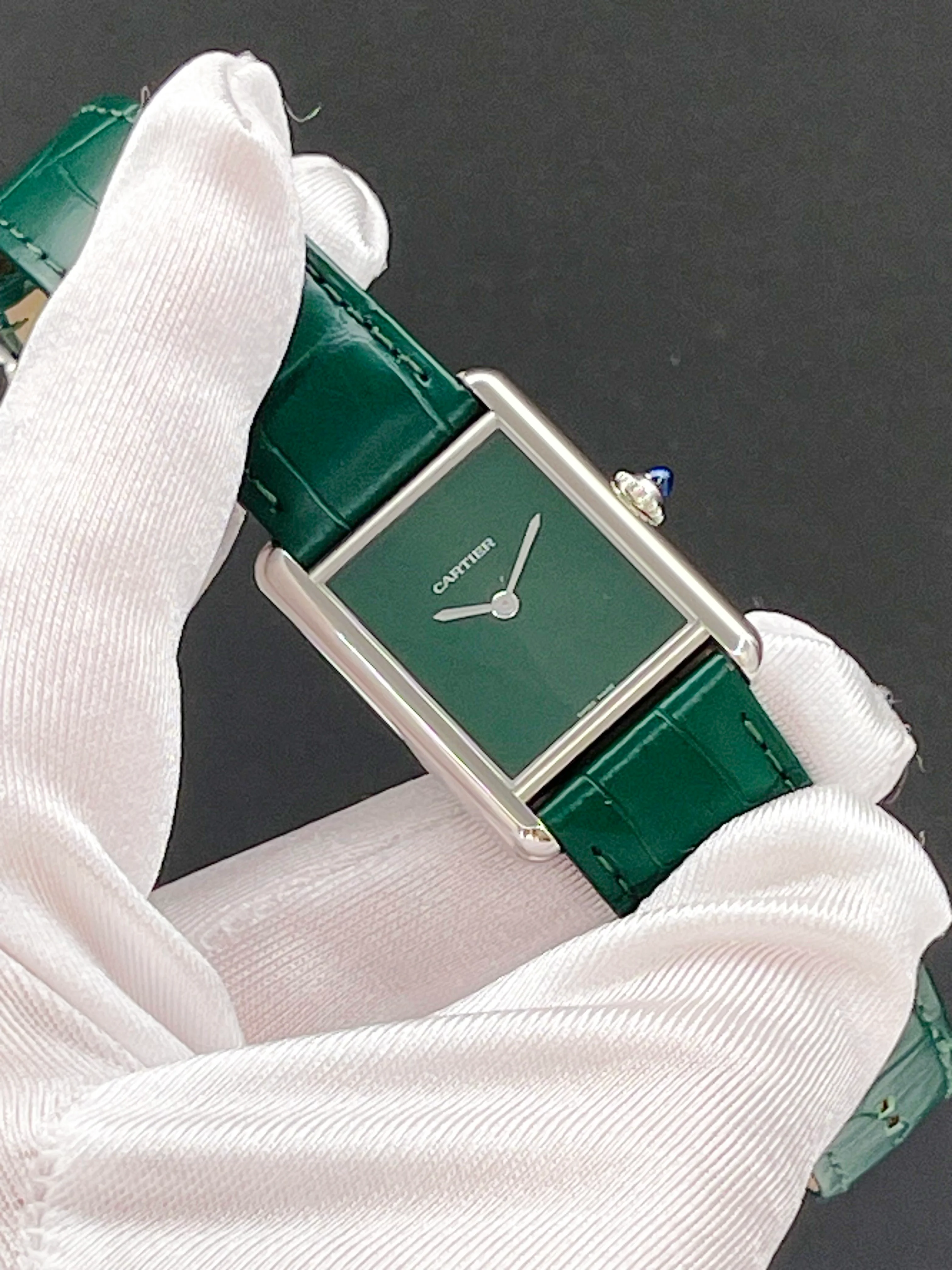 This particular Tank Must - is with the green lacquered dial and green alligator-skin strap combination which was released in 2021. It's highly collectible and Cartier has strong reputation for retaining its value over time.