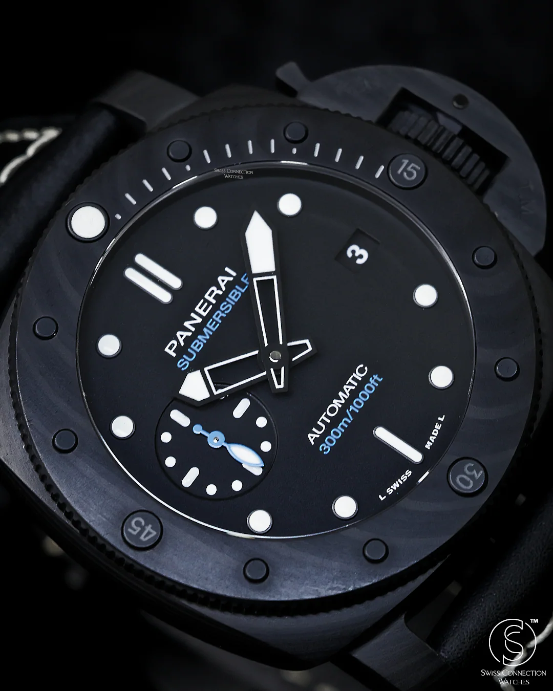 The PAM02231 is completed with a durable and flexible black caoutchouc rubber strap, chosen for its resistance to saltwater, sweat, and heat. A PVD-coated titanium buckle secures the watch with strength and style, while maintaining the overall lightness of the piece. Whether you’re exploring the ocean depths or embracing life above sea level, the Panerai Submersible Carbotech™ 42mm is a testament to technical mastery and modern Italian watchmaking—stealthy, functional, and utterly uncompromising.